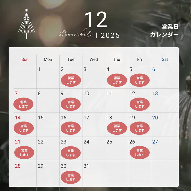 [営業している日] 火曜日、金曜日以外も営業日を拡大しております。詳しくはショップニュースをご覧ください!