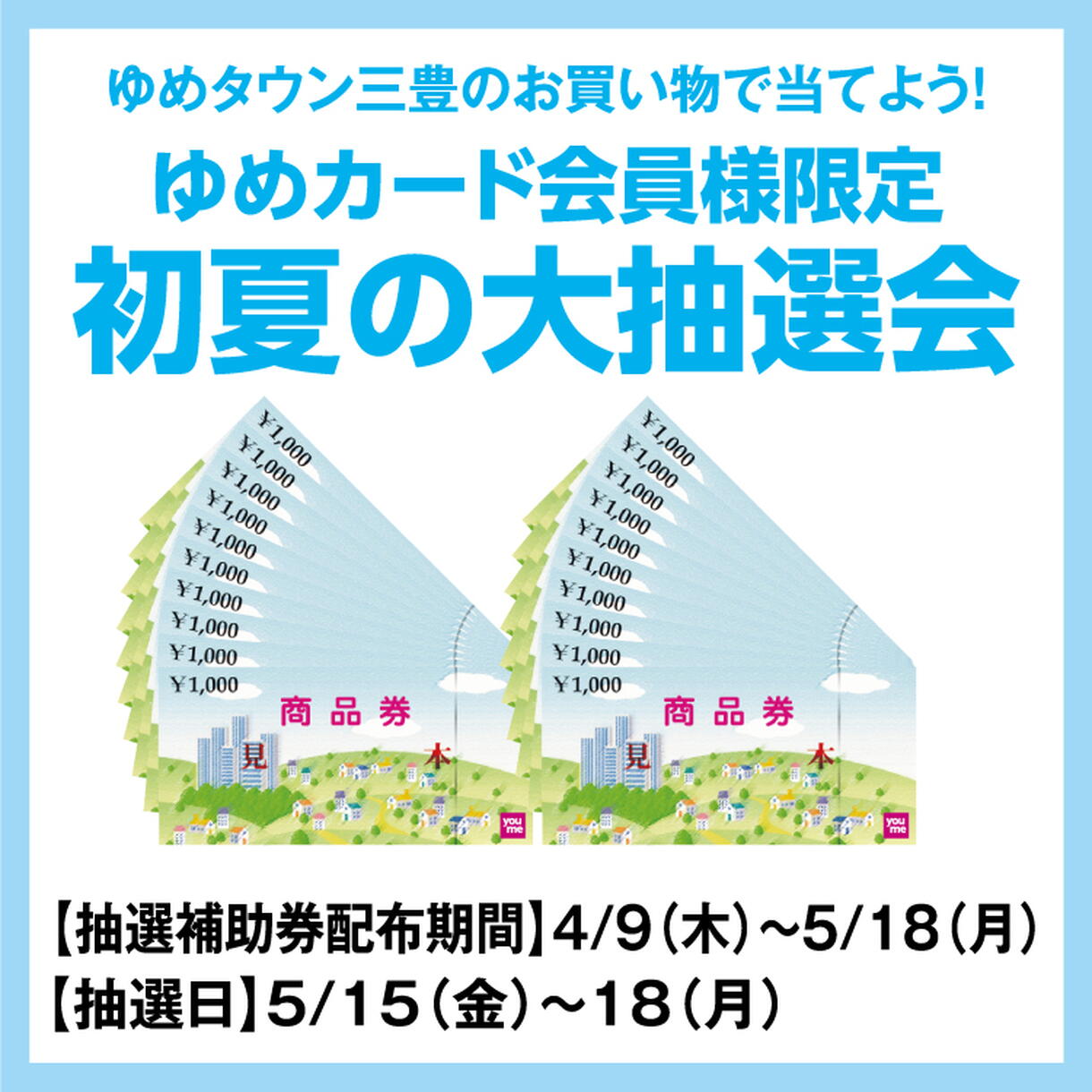 ゆめタウン三豊のお買い物で 当てよう! 「ゆめカード会員様限定 初夏の大抽選会」