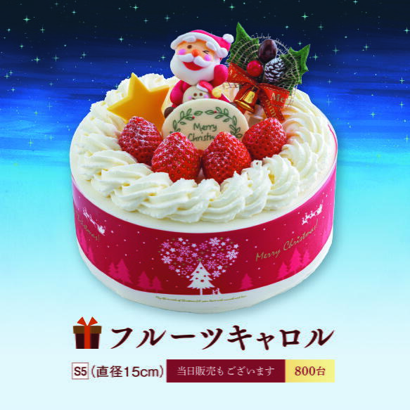 発売以来人気No. 1のクリスマスケーキです。苺の甘酸っぱい美味しさがさらに引き立つ、オリジナルブレンドの生クリームとのハーモニーをお楽しみください。