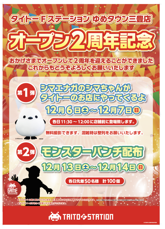 普通の風船より大きいタイトーロゴ入り風船を配布致します。