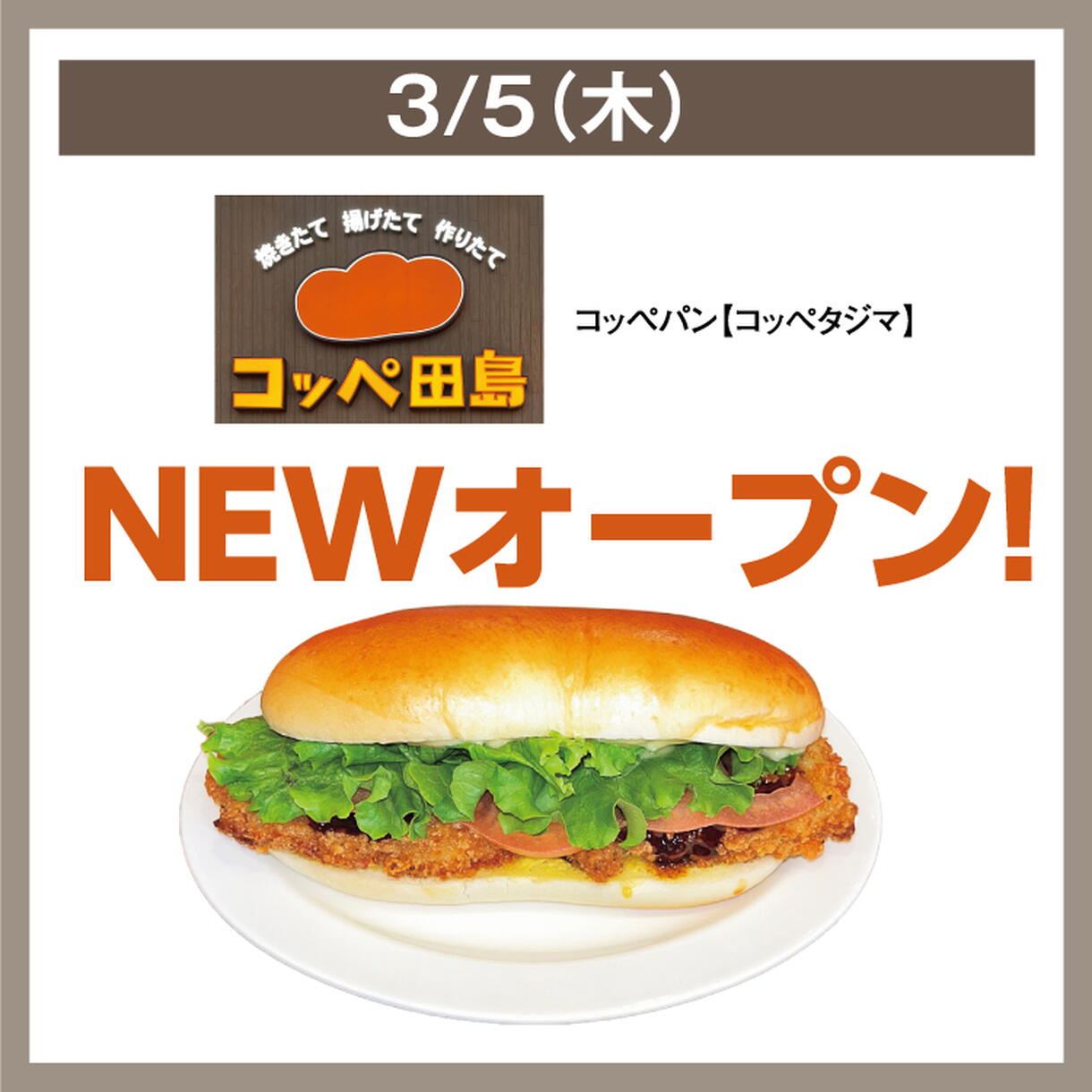 3/5(木) コッペ田島 NEW オープン!