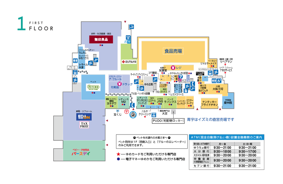 • ATM 大分銀行/ゆうちょ銀行/大分みらい信用金庫/大分県信用組合/セブン銀行