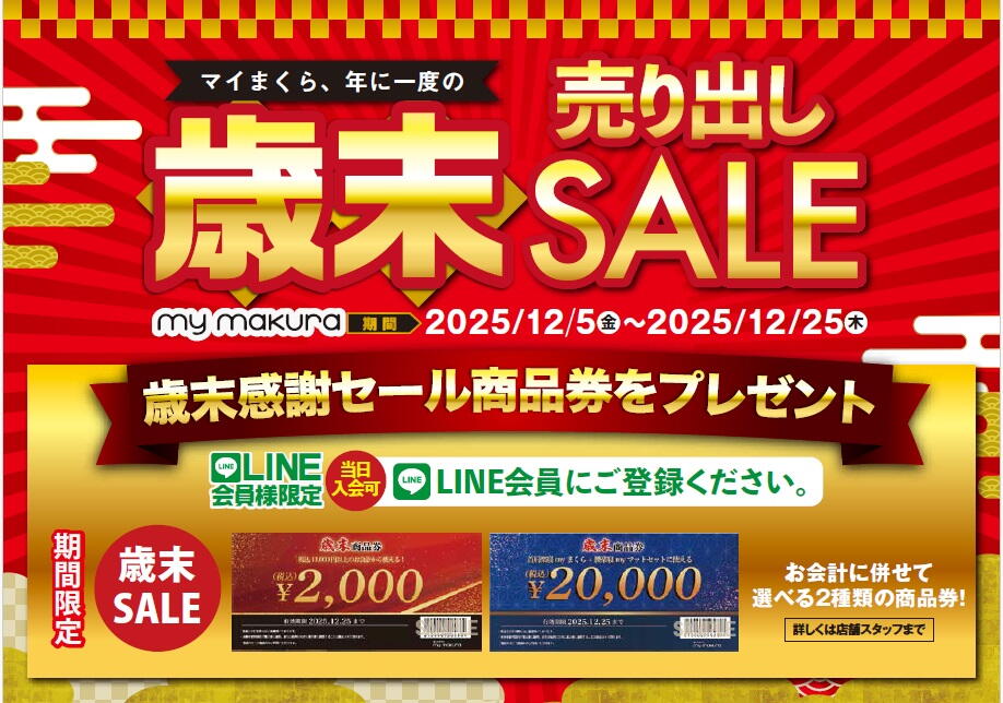 ただいまマイまくらでは、歳末売り出しSALEを開催中!