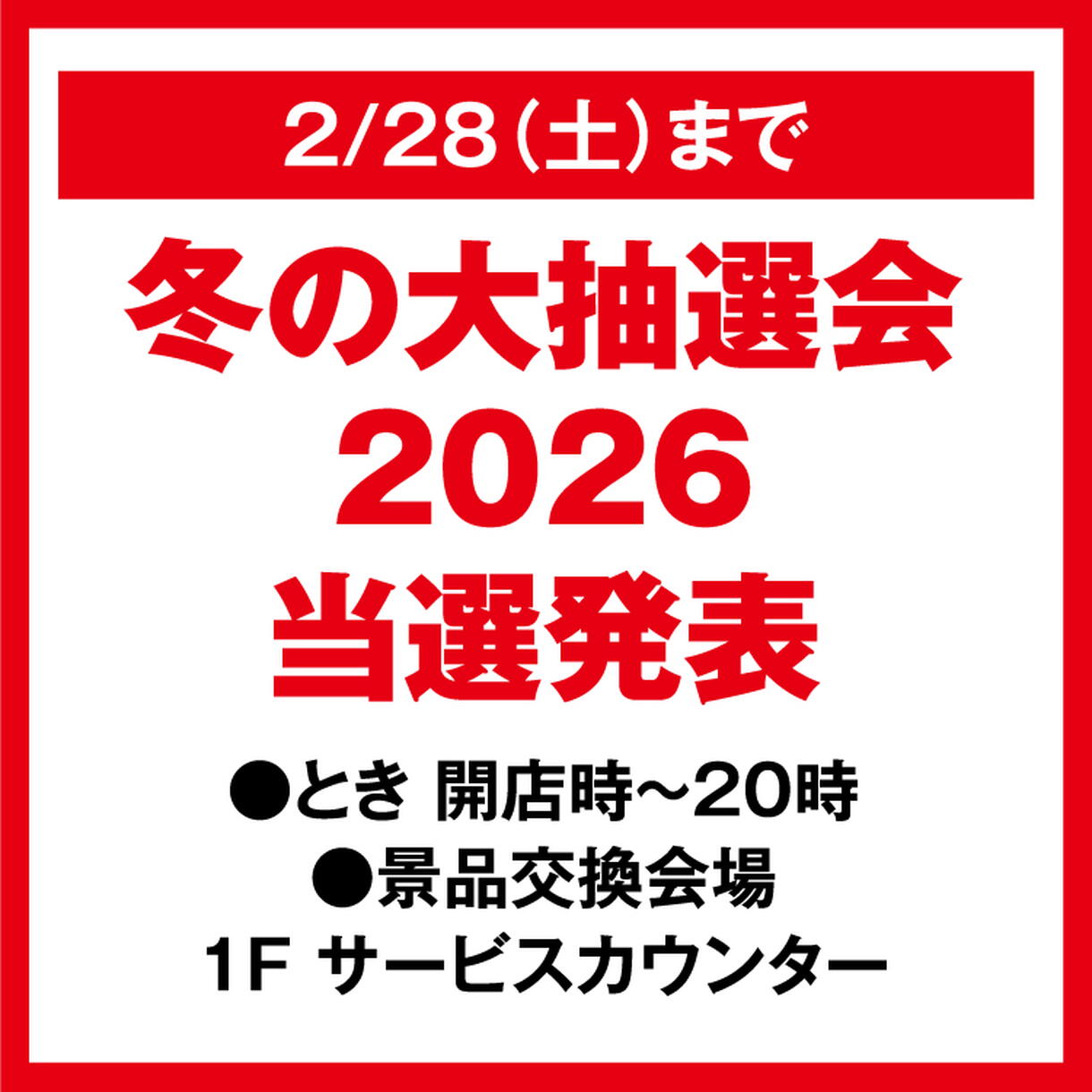 ※必ず期間中にご来店の上、交換をお願いします。期日を経過しますと当選は無効となります。