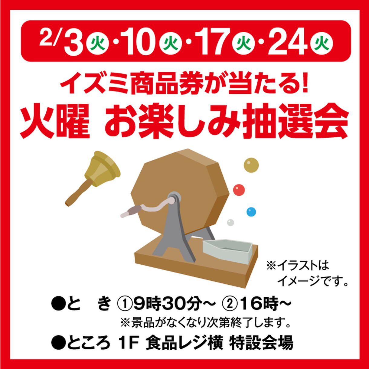 イズミ商品券が当たる! 火曜 お楽しみ抽選会