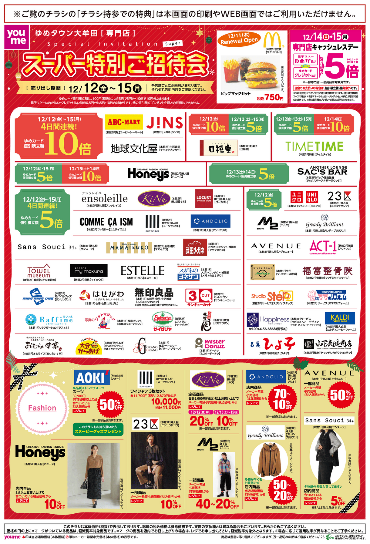【12/12(金)~15(月)】専門店『スーパー特別ご招待会』