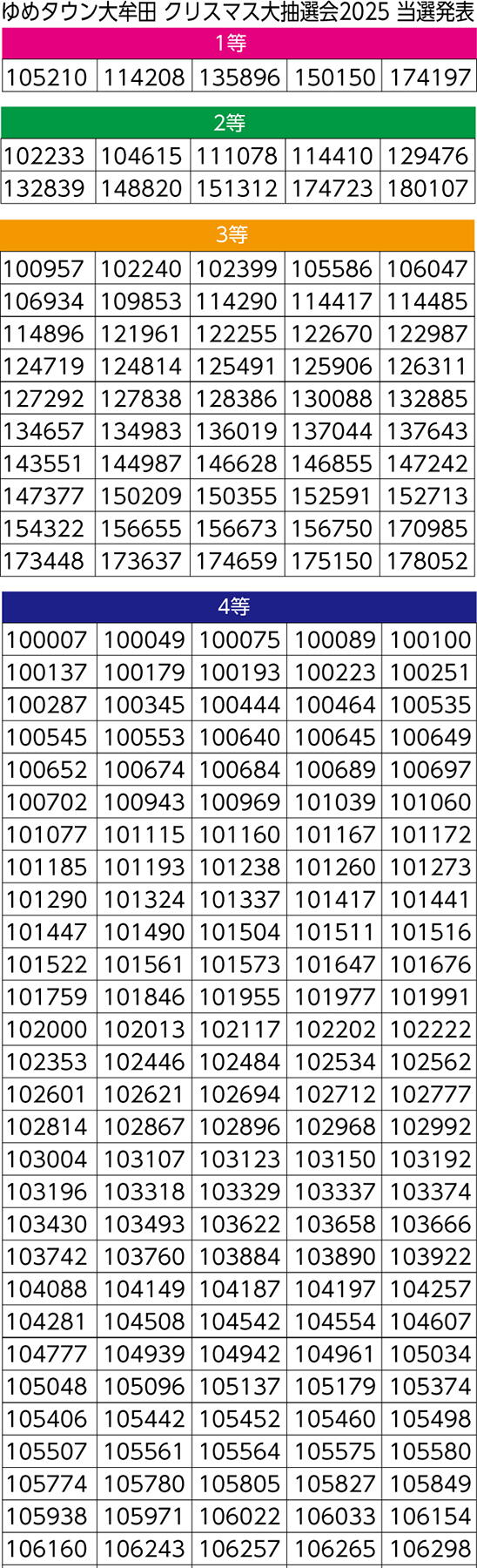 クリスマス大抽選会2025 当選発表