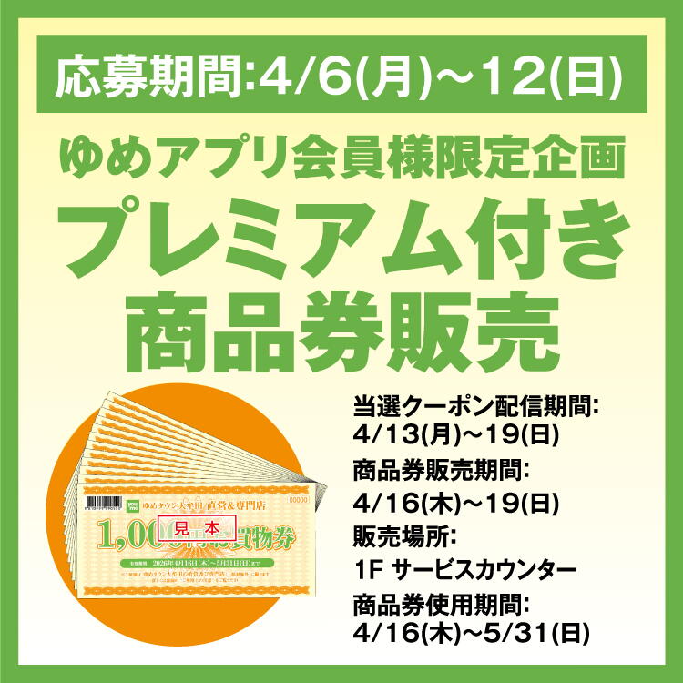 ※対象店舗・対象商品など詳細は、ゆめアプリ「ら・ら・ら・キャンペーン」をご覧ください。