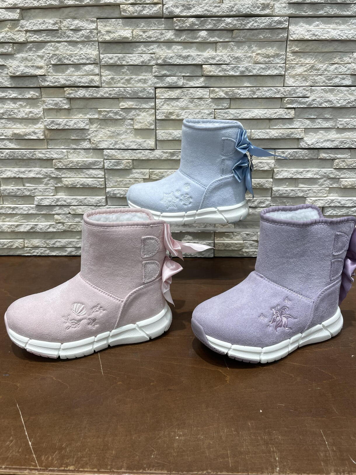 パステルカラーが冬のコーディネートに合う、オシャレなブーツです。