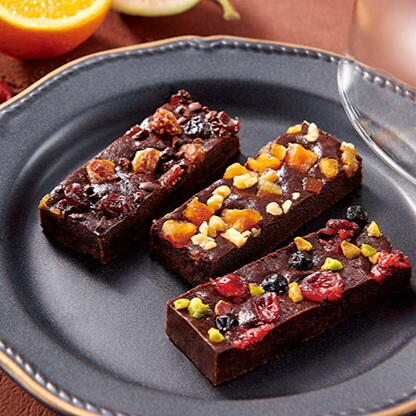 たっぷりのドライフルーツの乗った、贅沢なガトーショコラです。