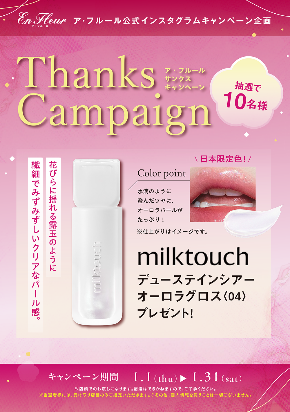 1/1(祝・木)~1/31(土) ア・フルール公式インスタグラムキャンペーン企画『Thanks Campaign』