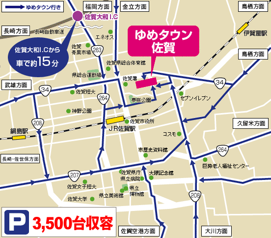 ゆめタウン佐賀へのアクセスルート略図