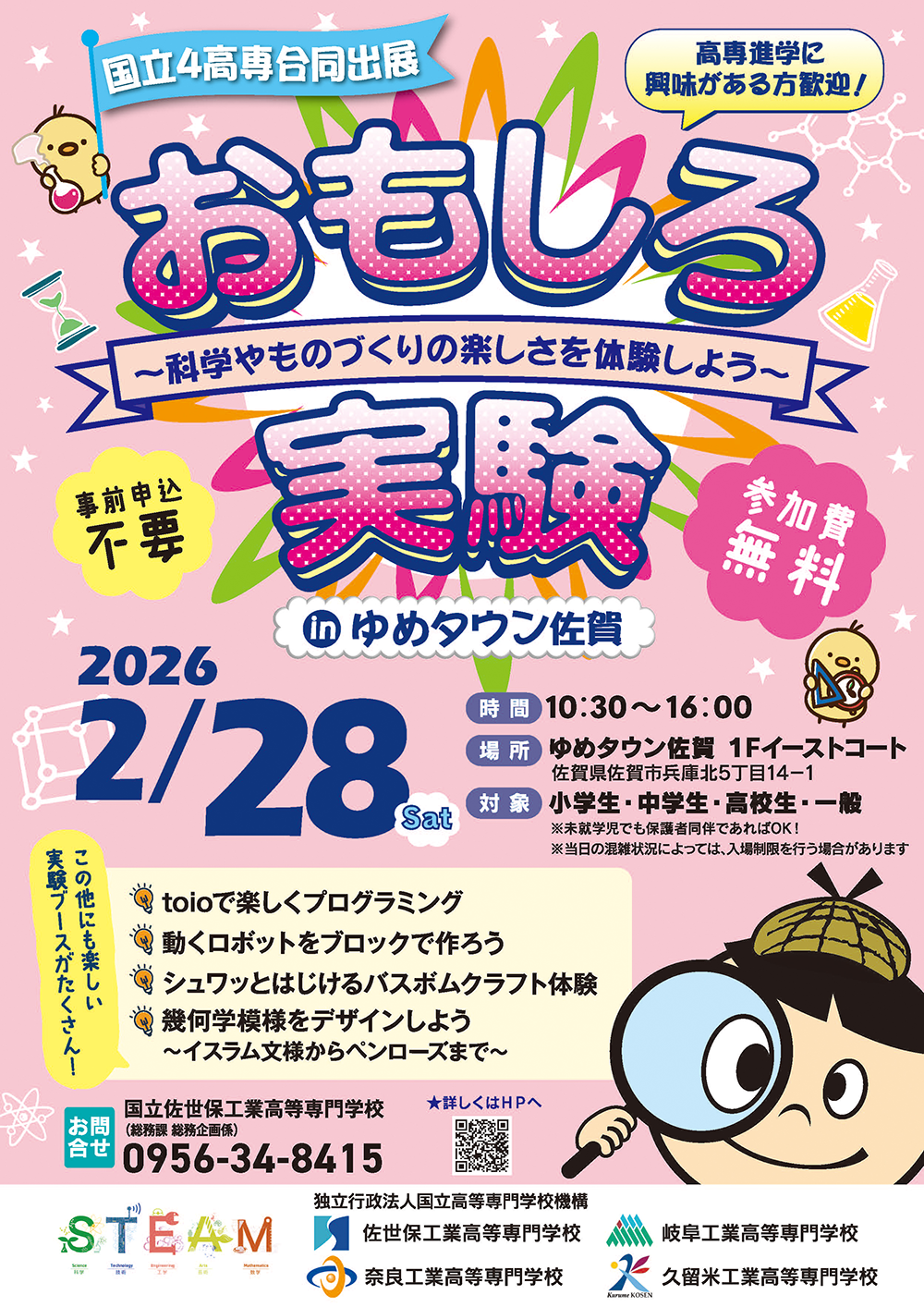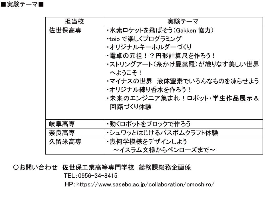 佐賀県での開催は第2回目となる今回は、佐世保高専、岐阜高専、奈良高専、久留米高専の4高専による共同開催となります。