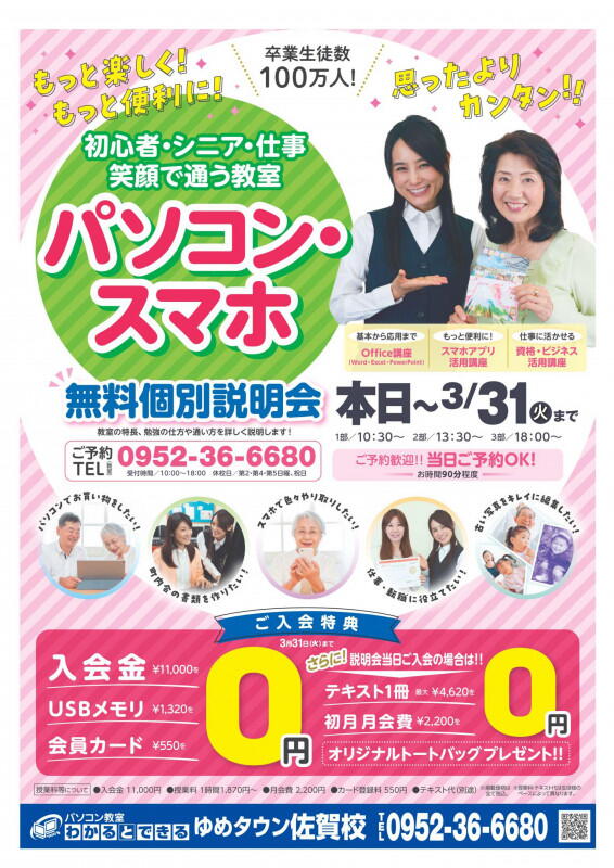 パソコン教室わかるとできる ゆめタウン佐賀校です。