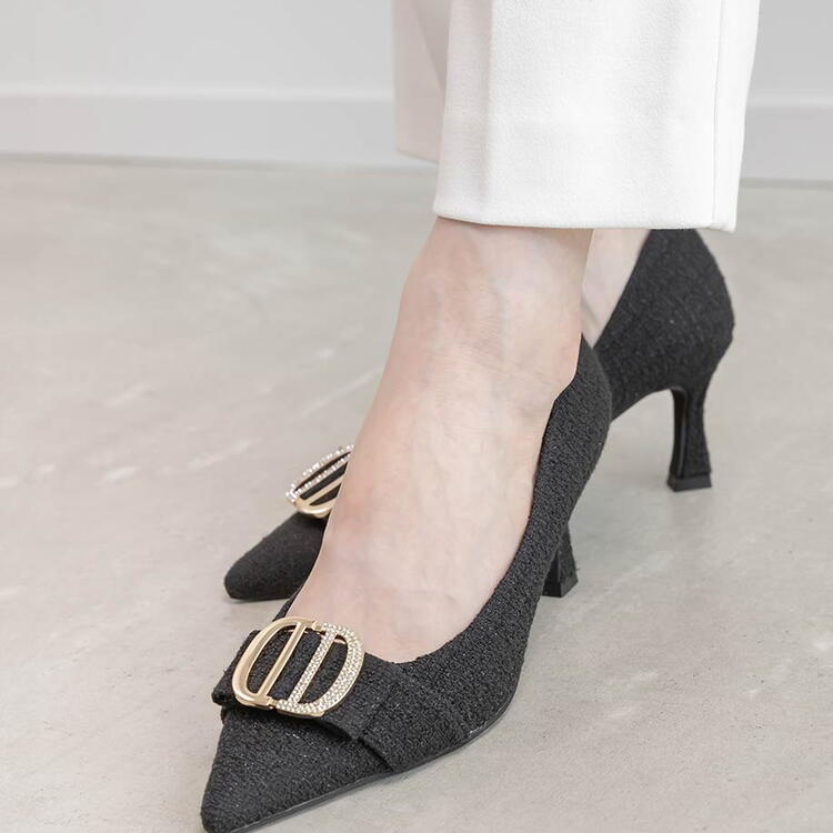 【RANDA(ランダ)ビジューメタルパーツポインテッドトゥパンプス】