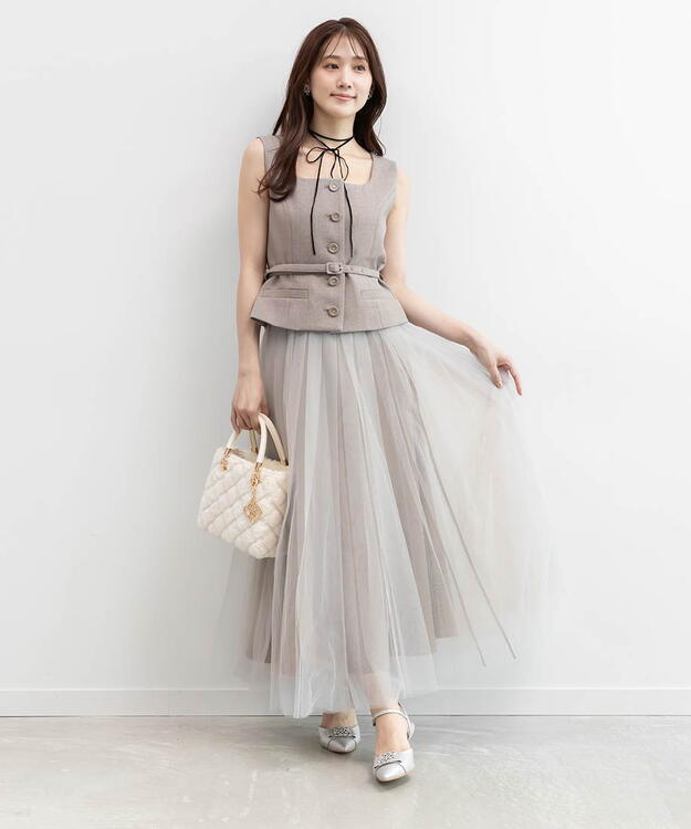 【RANDA(ランダ)スクエアネックジレ&チュールスカート】