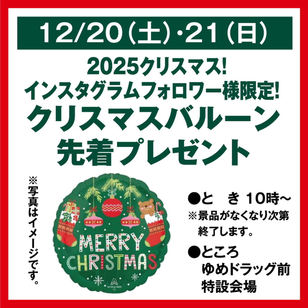 2025クリスマス! インスタグラムフォロワー様限定! クリスマスバルーン 先着プレゼント