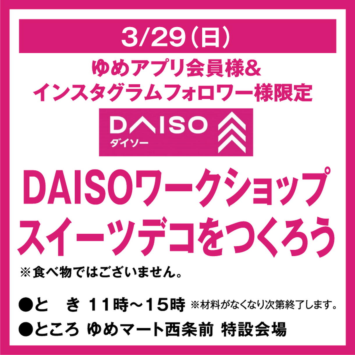 ゆめアプリ会員様&インスタグラムフォロワー様限定 DAISOワークショップ スイーツデコをつくろう
