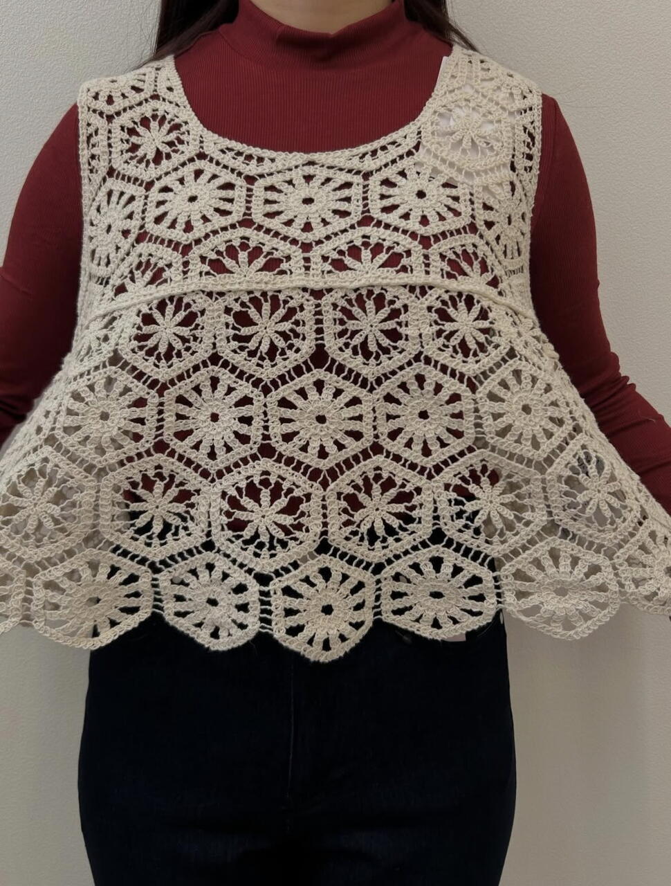 デザインや色が可愛いクロシェ編みニットベストが新作入荷致しました!🙌