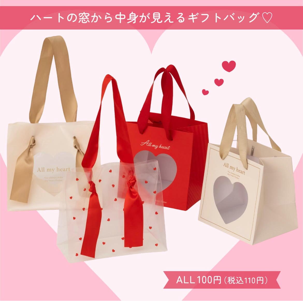 中身がチラリと見えるハートの窓付きバッグや、リボンがアクセントになったジップバッグなど、渡す瞬間からワクワクするようなデザインが勢揃い!🎁