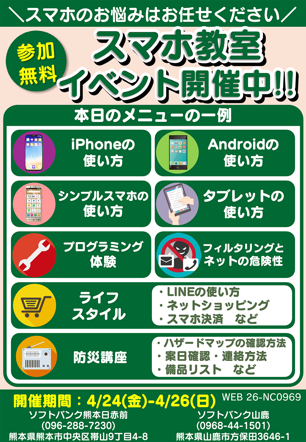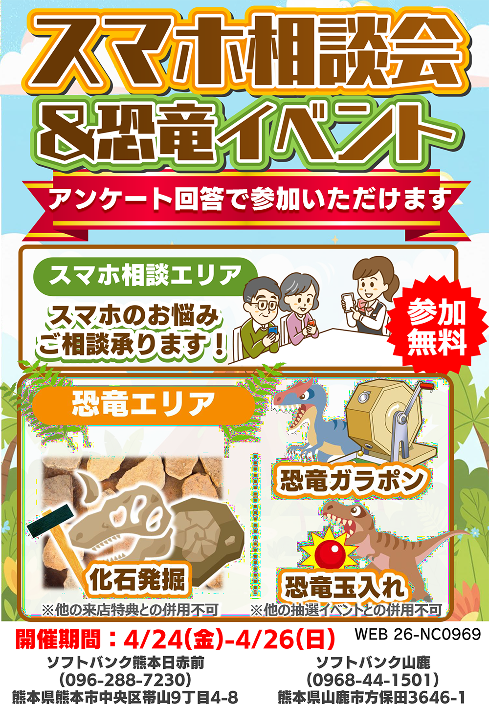 4/24(金)~26(日) スマホ相談会&恐竜イベント