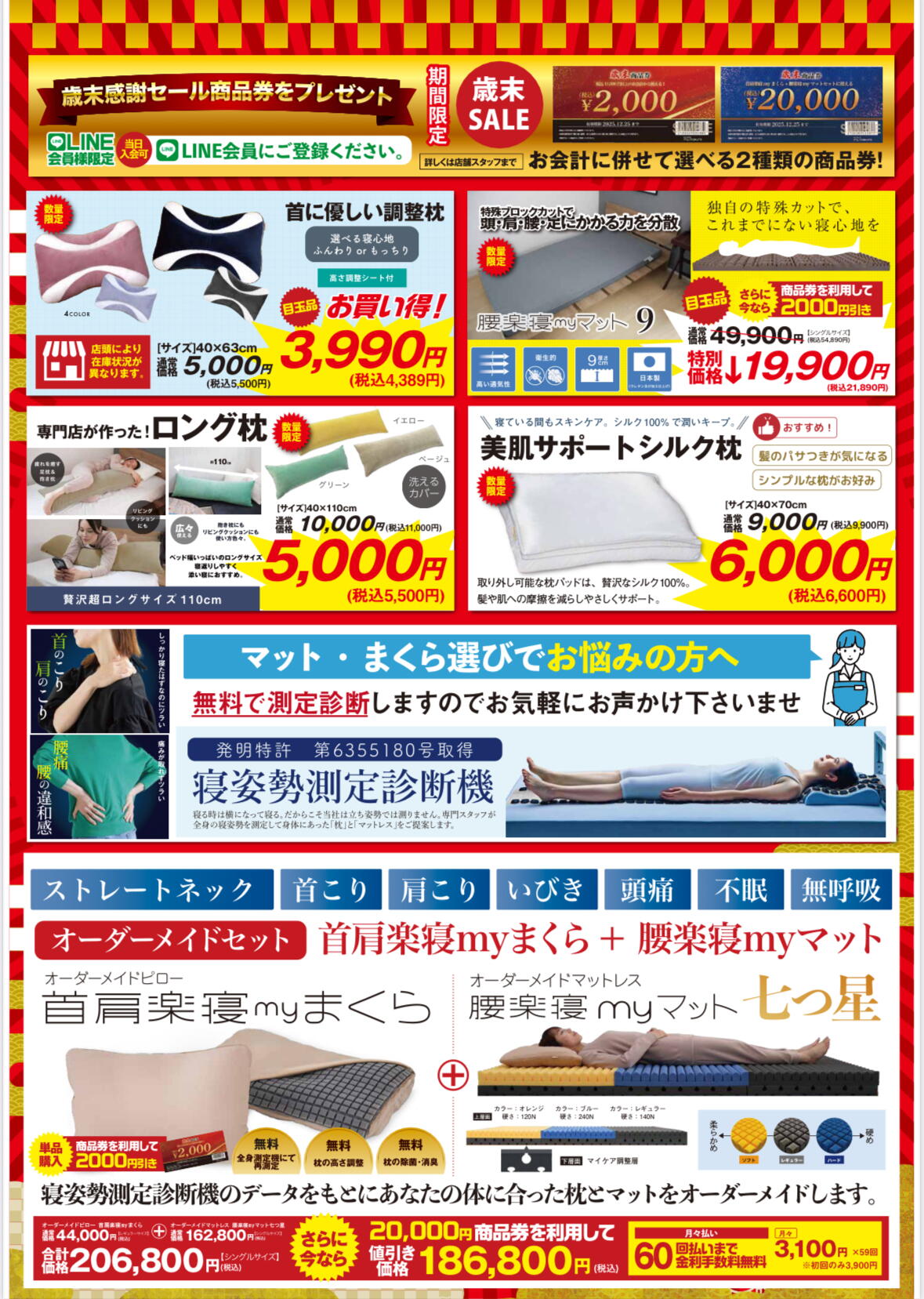 他にも今だけのお得な商品、マイまくらでしか手に入らない商品など種類豊富に取り揃えております。