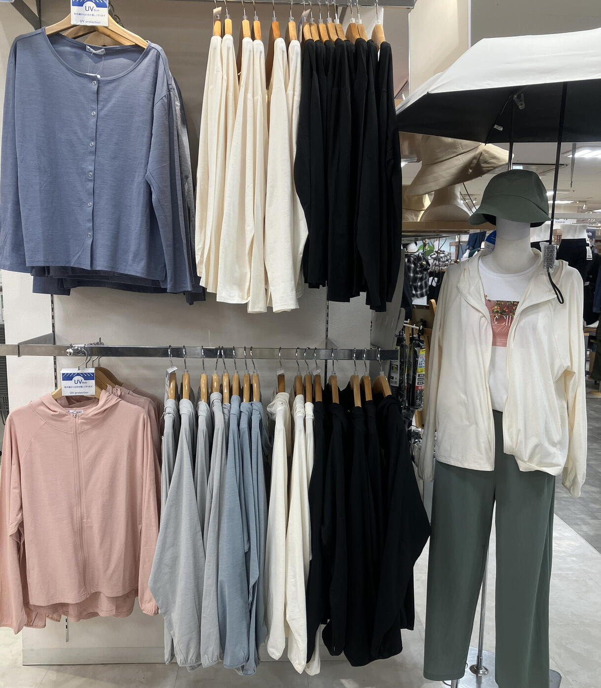 UVパーカー・カーディガン、帽子、折り畳み傘(晴雨兼用)、アームカバー、フェイスカバー、今からの季節お使い頂ける紫外線対策アイテム入荷いたしました♪