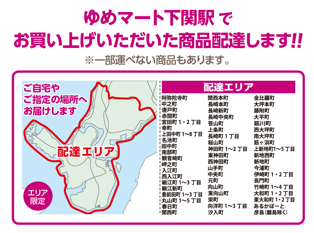お買い上げいただいた商品 ご自宅やご指定の場所へ 配達します!