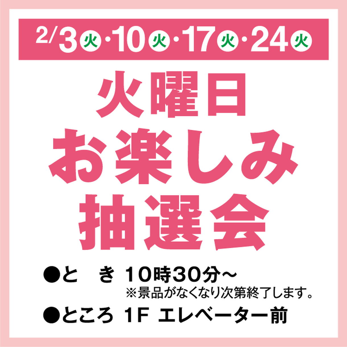 火曜日お楽しみ抽選会