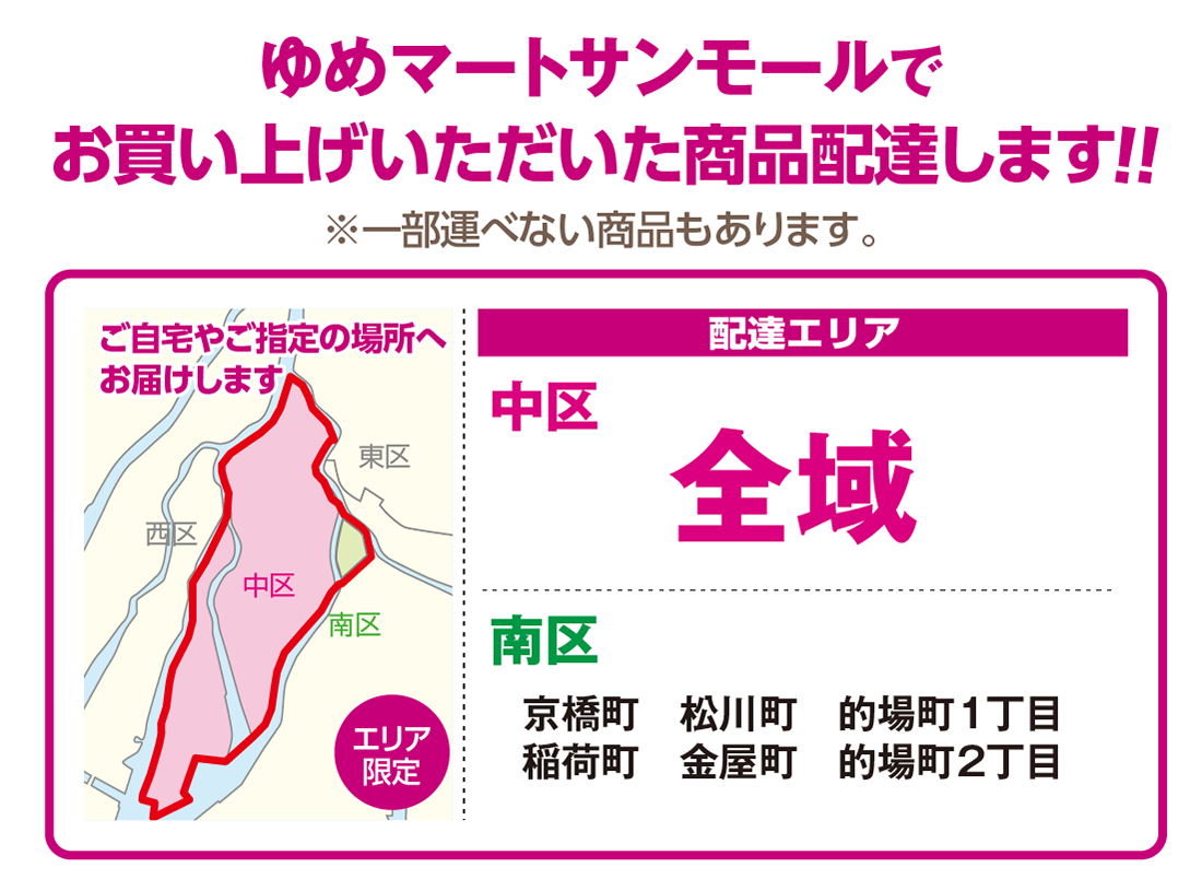 お買い上げいただいた商品 ご自宅やご指定の場所へ 配達します!