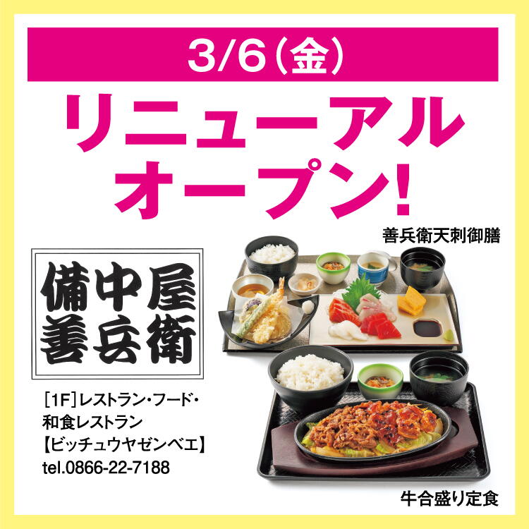 2026.03.06 和食レストラン 備中屋善兵衛がメニューも新たにリニューアルopen