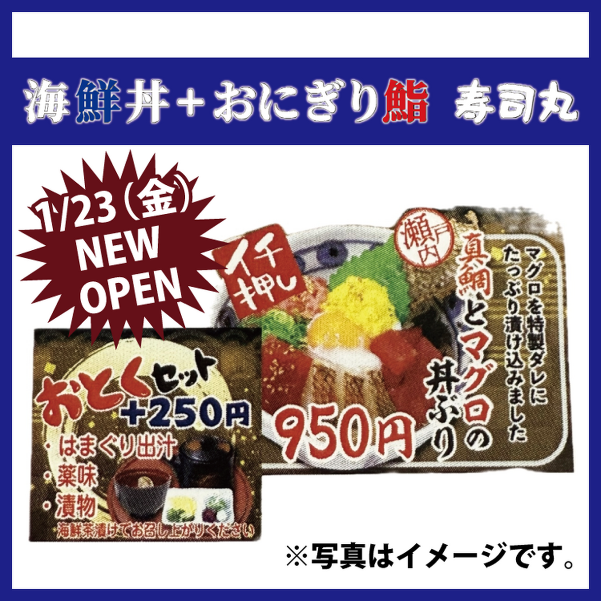 1/23(金) 海鮮丼+おにぎり鮨 寿司丸 NEW OPEN