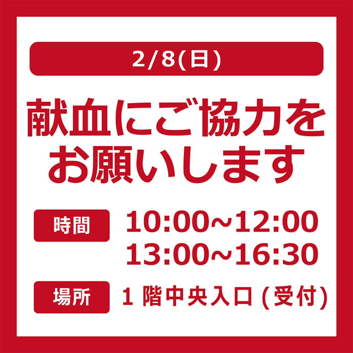 2/8(日) 献血にご協力をお願いいたします!