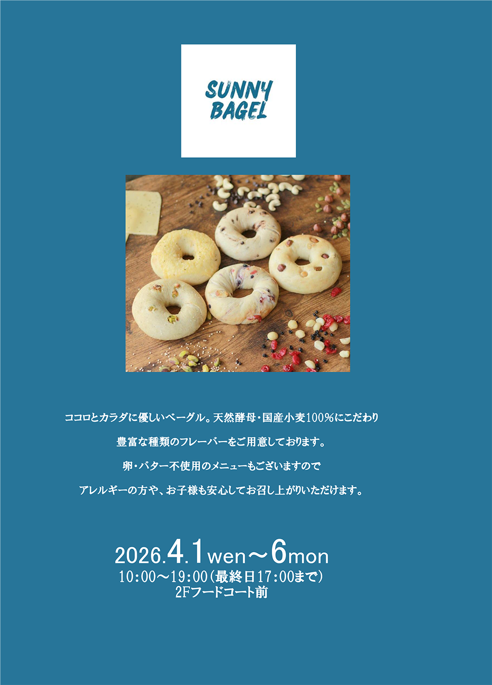 4/1(水)~6(月) SUNNY BAGEL 期間限定販売