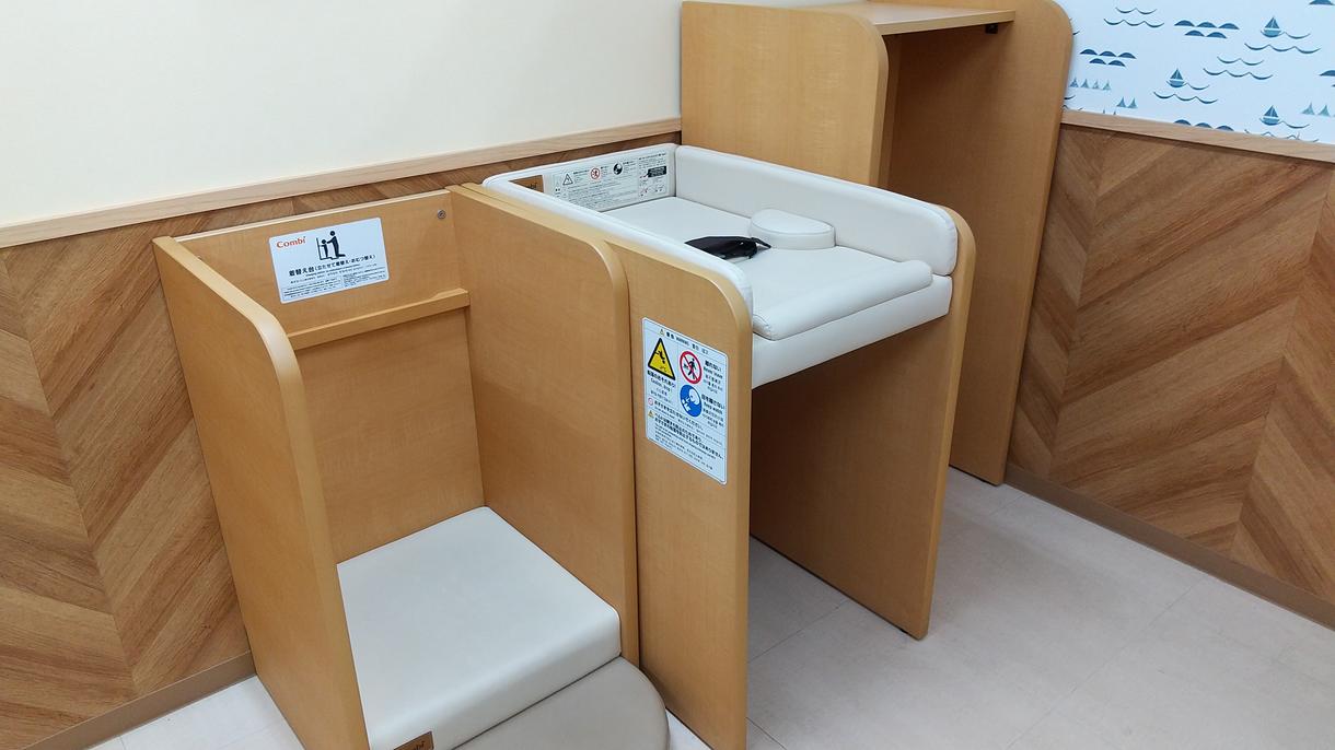 ベットタイプで安心しておむつ替えができるスペースも充実しています。