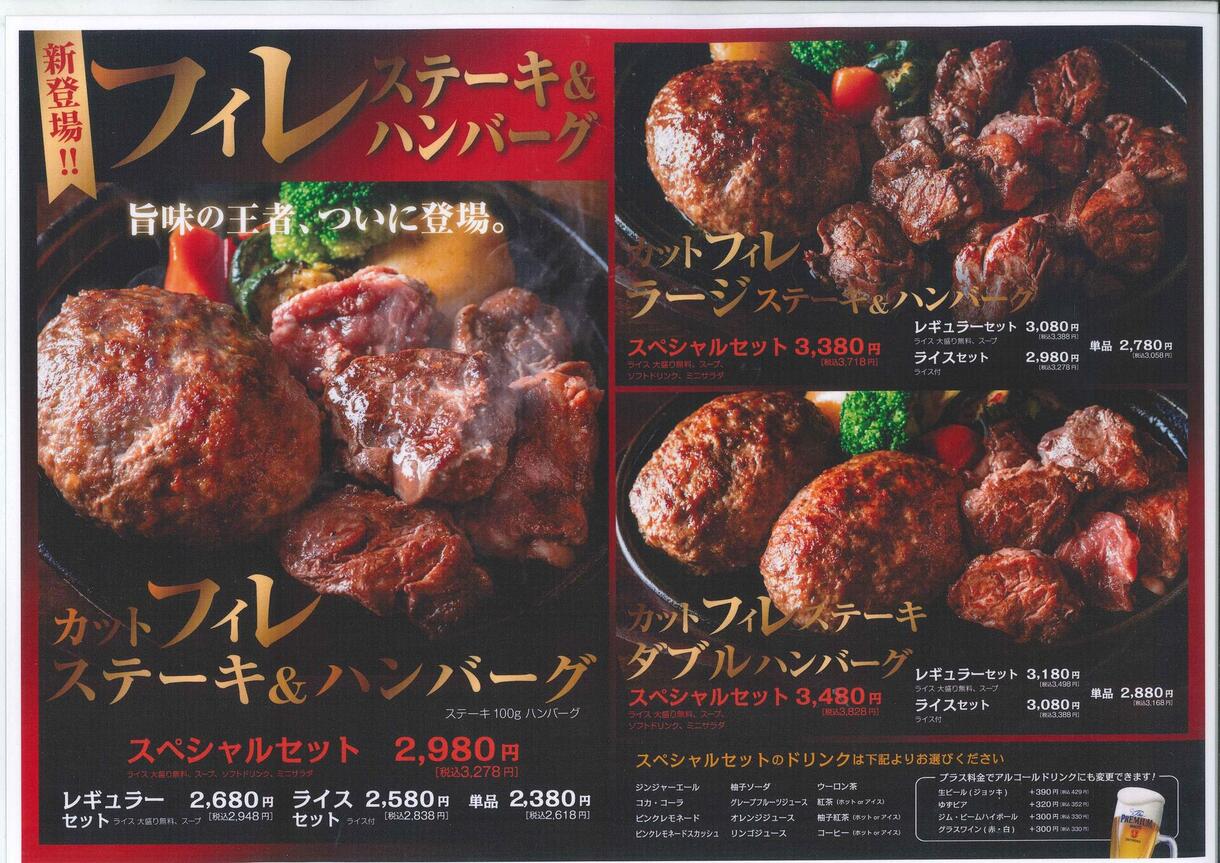 フィレステーキ&ハンバーグが新登場!!