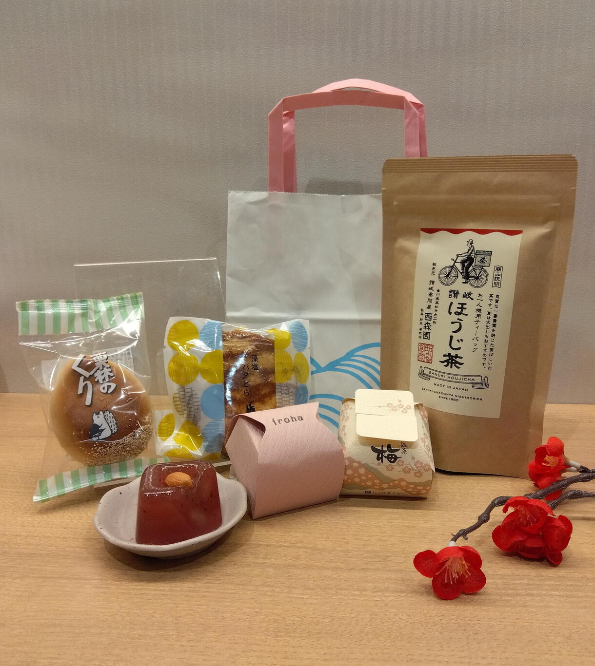 冬限定のかおり梅やバタどら、羊羹iroha紅梅など計5点、税込1,414円分(本体1,310円)相当が入っています♪