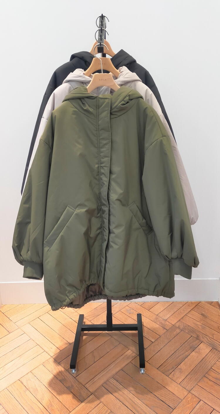 中綿仕様で暖かく、軽やかな着心地のモンスターコートです。