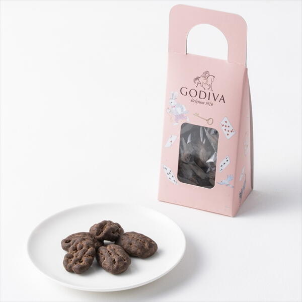 ティーパーティを彩る紅茶をイメージしたチョコレートやゴディバの100周年を記念してリニューアルされたハート形のチョコレート、シーズン限定カレなどを、物語のシンボルのトランプやティーセット、白うさぎ達をちりばめたパッケージに詰め合わせました。