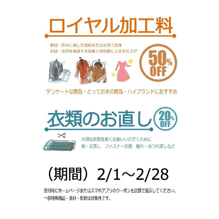 【2】月曜日〜金曜日の14時〜17時は、会員様クリーニング料金20%OFFサービス