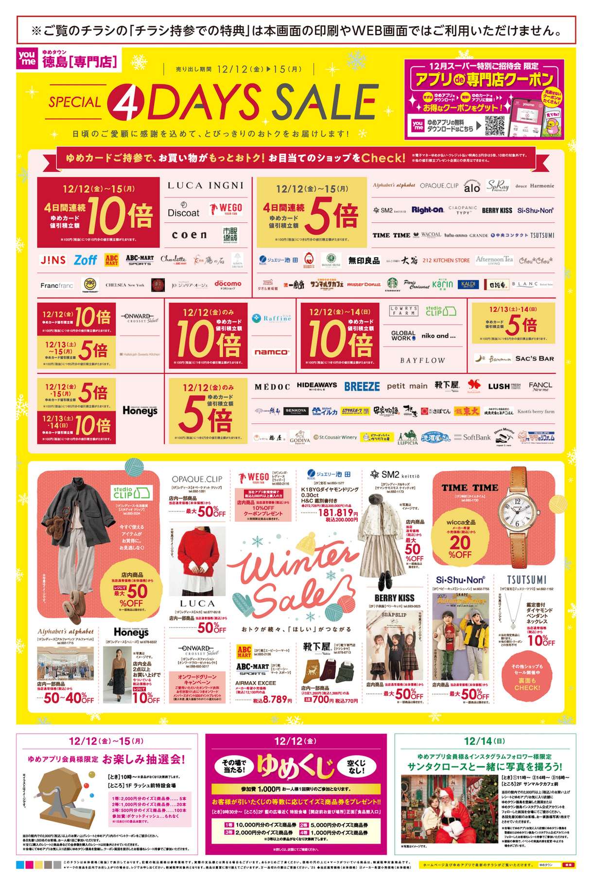 【12/12(金)~15(月)】専門店『SPECIAL 4DAYS SALE』