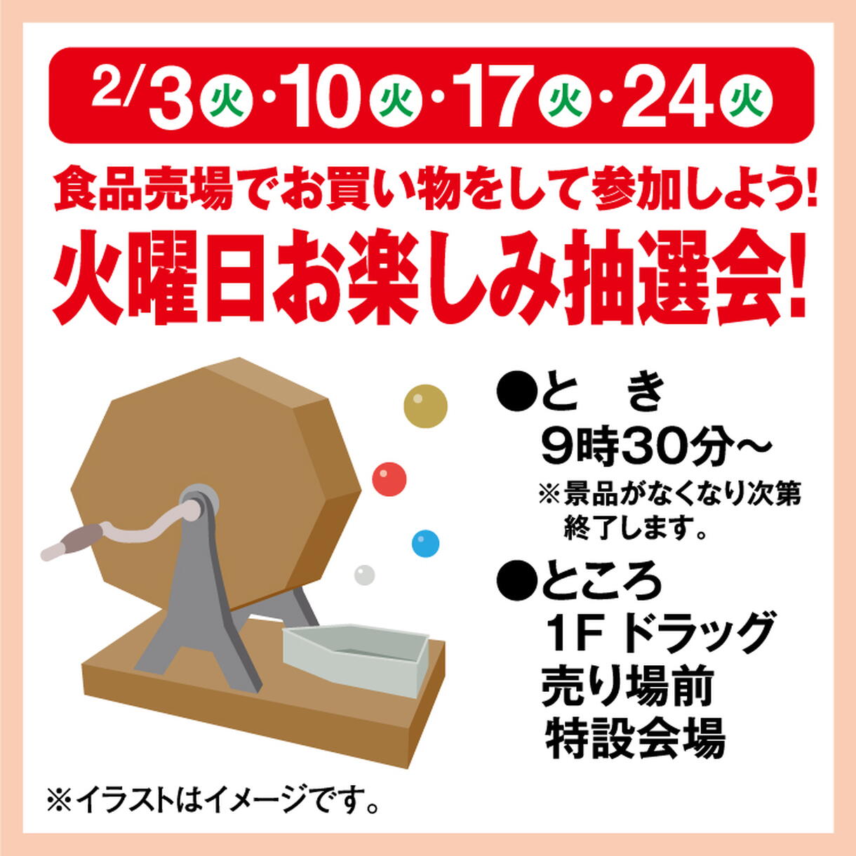 食品売場でお買い物をして参加しよう! 火曜日お楽しみ抽選会!
