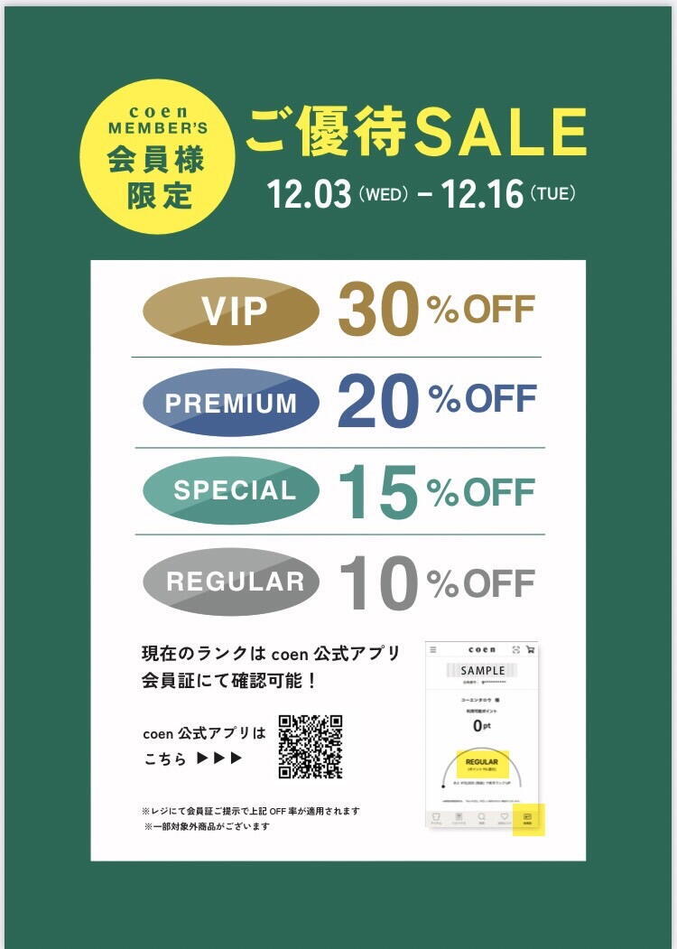 ★コーエンメンバーズ会員様ご優待セール開催中★