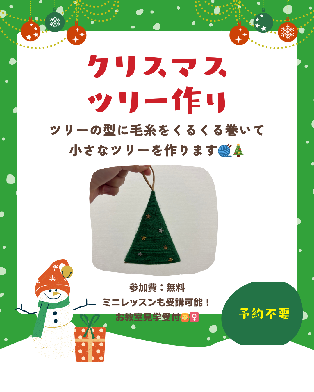 普段の教室見学やミニレッスン体験に加えて、今回はクリスマス工作をご用意しております!