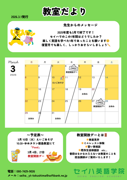 セイハ英語学院ゆめタウン徳島教室です♪