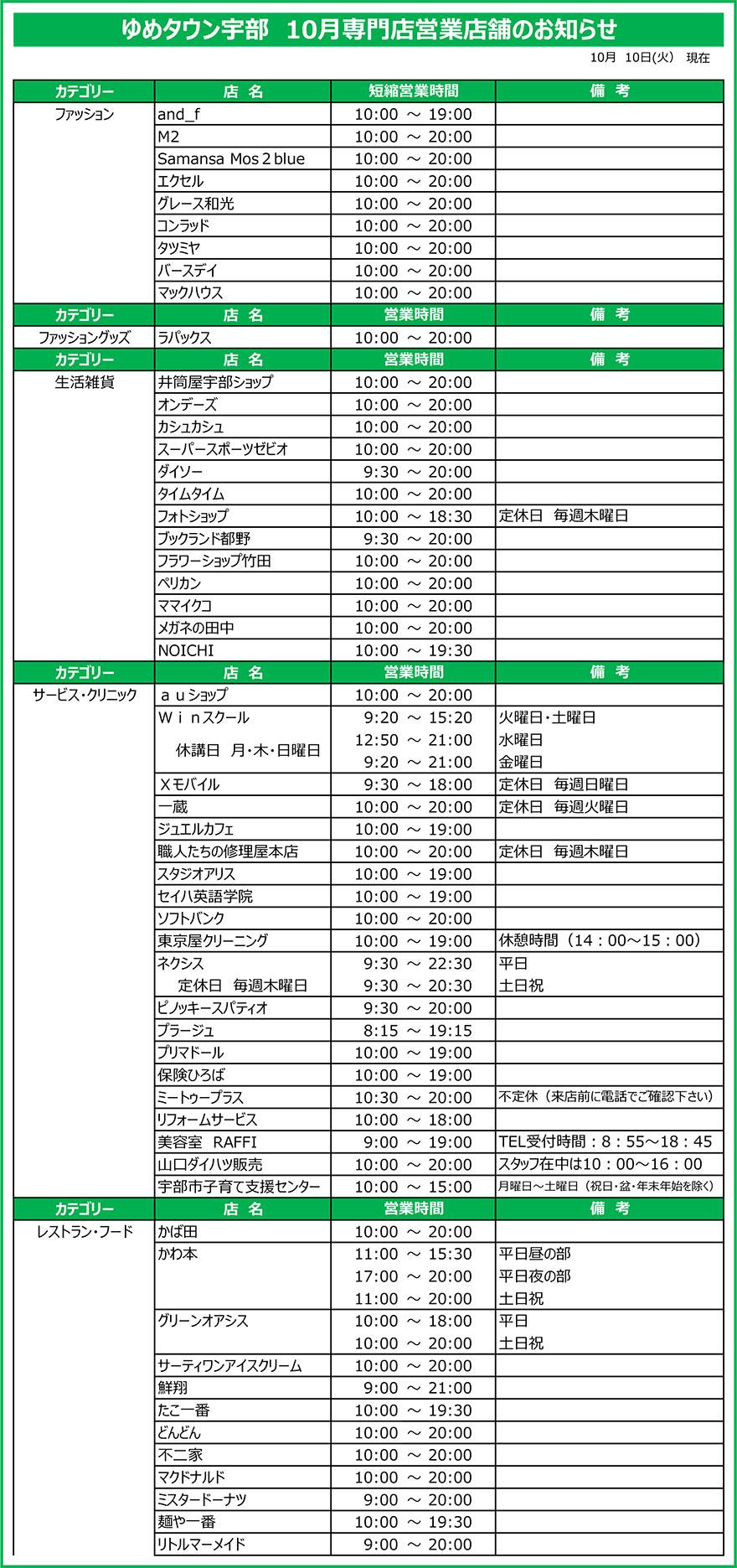 ・直営売場(食品売場・ドラッグ売場除く) 9:30~20:00