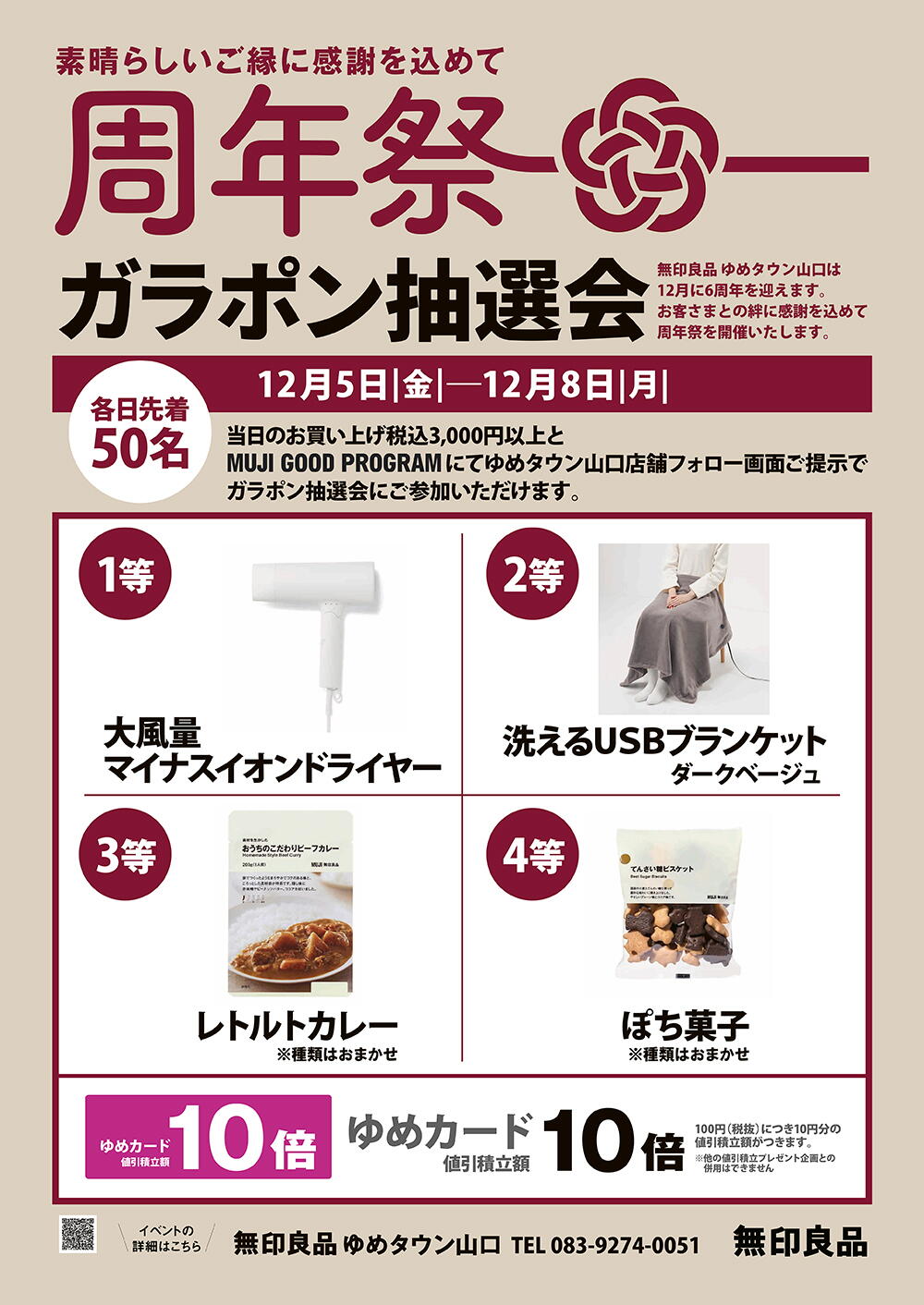 無印良品ゆめタウン山口は12月に6周年を迎えます。