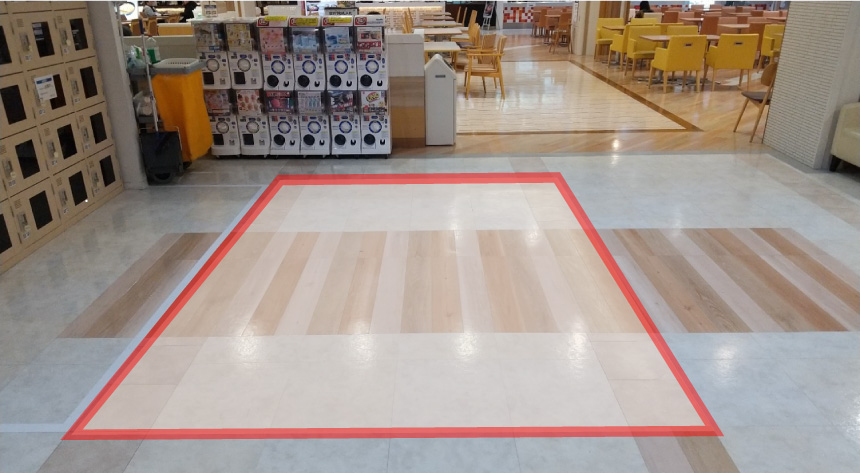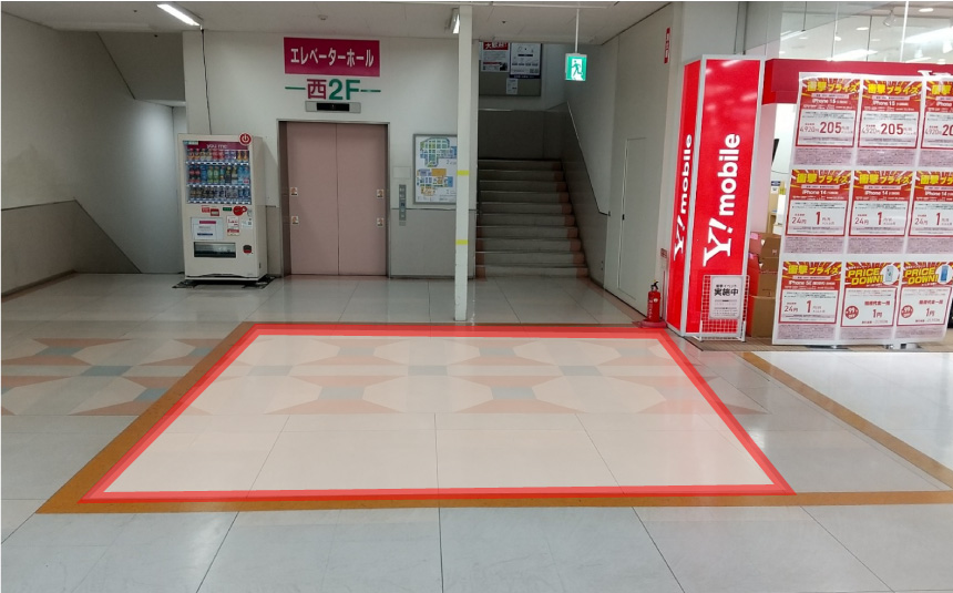 小スペースですが、携帯ショップが並んだエリアとなっておりますので、関連サンプリングや会員募集、ワークショップなどのスペースとして有効です。