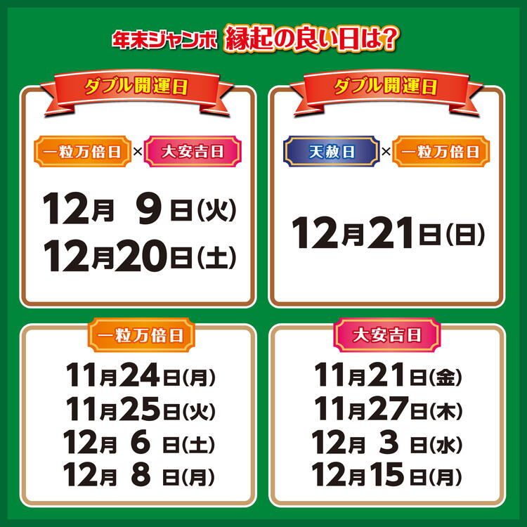 12月9日は年末ジャンボ販売期間中初めてのダブル開運日☆