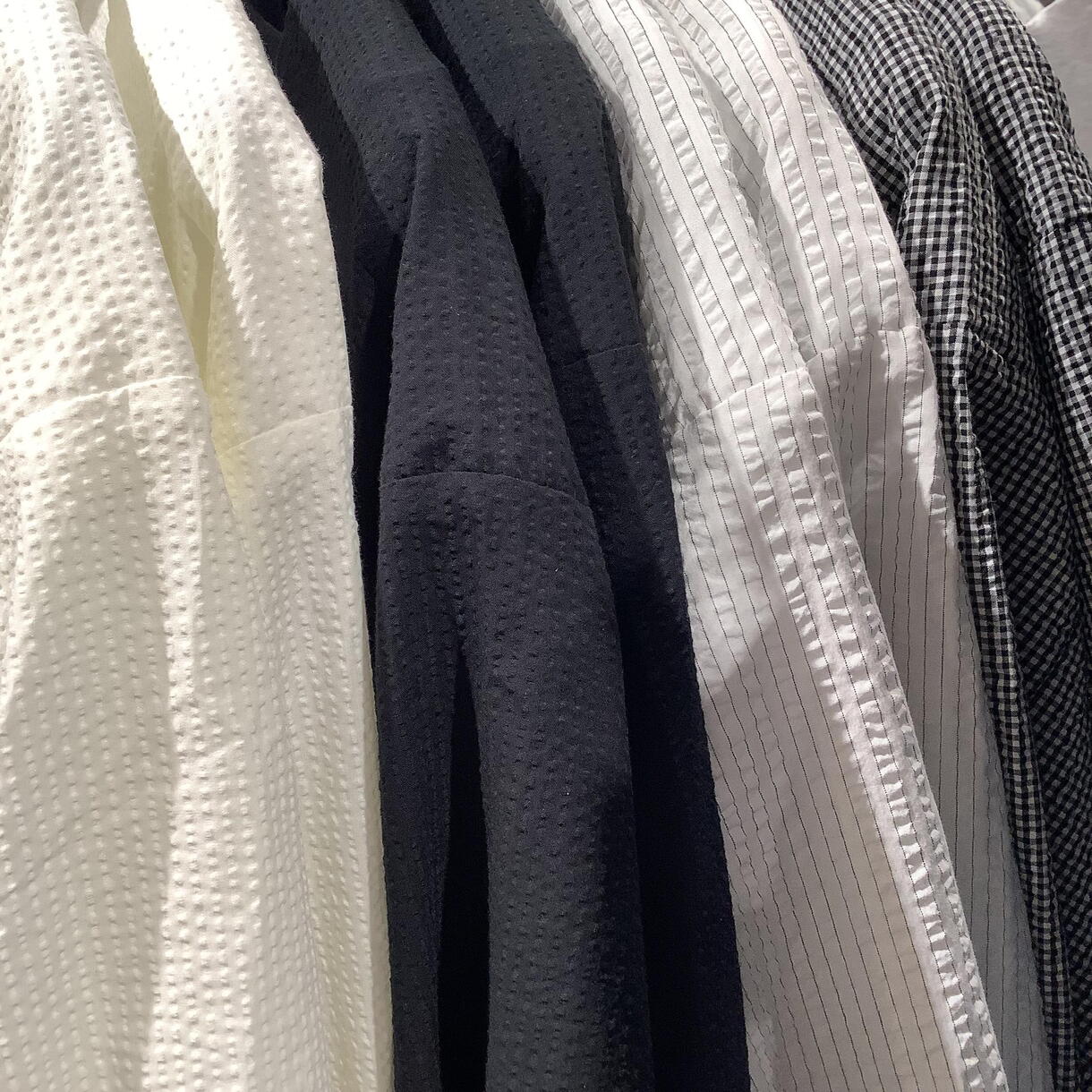 一枚でレイヤード風スタイルが決まるティアードデザインブラウス。凹凸のあるサッカー生地で春らしい爽やかな着こなしを演出します。ふんわり広がるシルエットがフェミニンながらも、比翼仕立てのノーカラーで全体をすっきりと引き締めるアクセントをプラス。合わせるボトムや小物次第でカジュアルからきれいめまで幅広いスタイルでお楽しみいただけます。